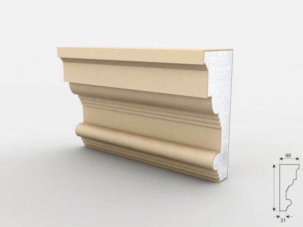 Pilasterkapitell „Stuttgart“ – 30cm aus beständigem EPS200-Styropor gefertigt und mit einer edlen Quarzsand-Beschichtung veredelt. Somit erhalten Sie das Stuckmaterial bereits vorbereitet für die Montage und den Anstrich.