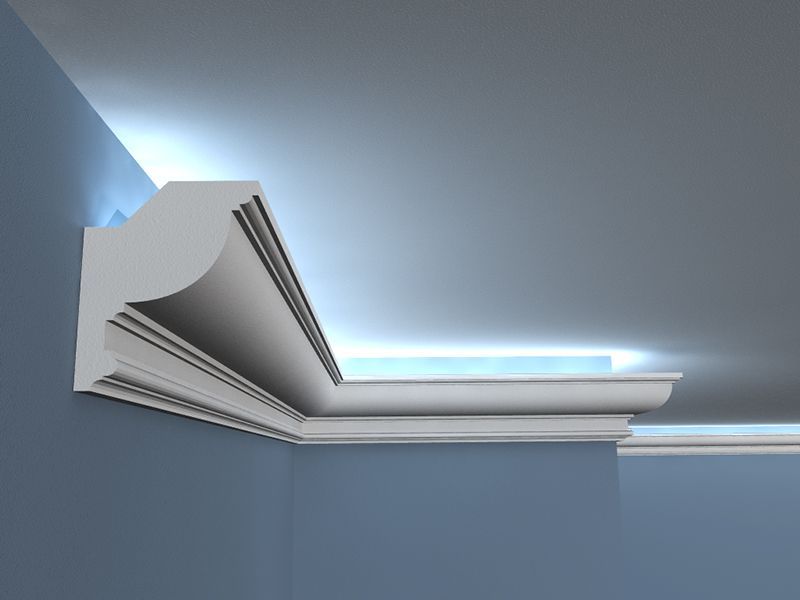 LED-Stuckleiste „Tokio“ Styropor aus beständigem EPS200-Styropor gefertigt und mit einer edlen Quarzsand-Beschichtung veredelt. Somit erhalten Sie das Stuckmaterial bereits vorbereitet für die Montage und den Anstrich.