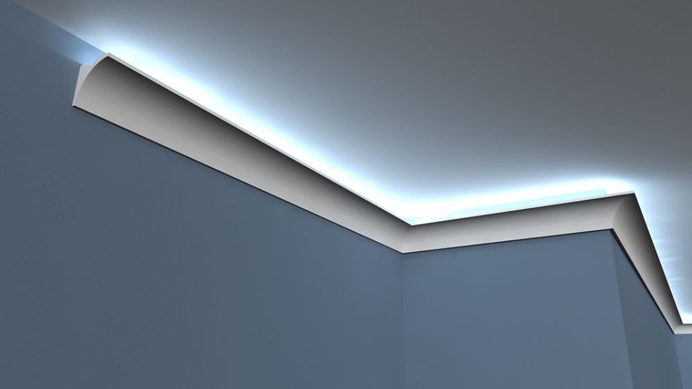 LED-Stuckleiste „Zürich“ Styropor aus beständigem EPS200-Styropor gefertigt und mit einer edlen Quarzsand-Beschichtung veredelt. Somit erhalten Sie das Stuckmaterial bereits vorbereitet für die Montage und den Anstrich.